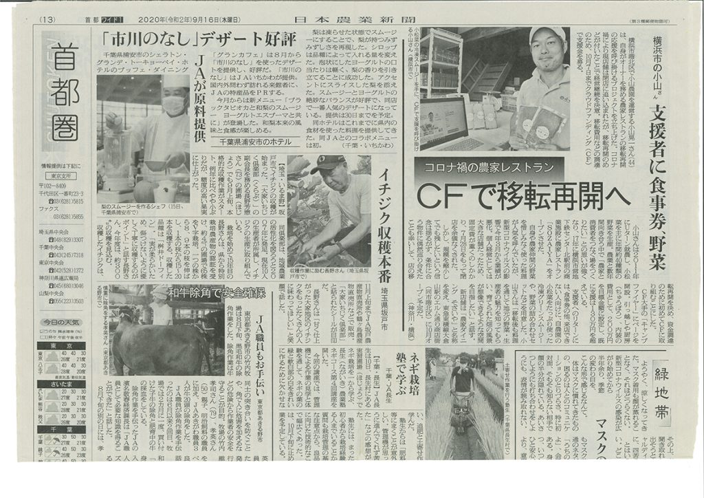 『日本農業新聞』に小山農園のクラウドファンディングについいての記事が掲載されました