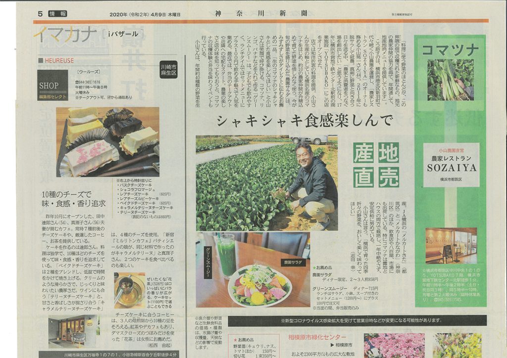 『神奈川新聞』に小山農園の小松菜と直営レストラン「農家レストランSOZAIYA」についての記事が掲載されました